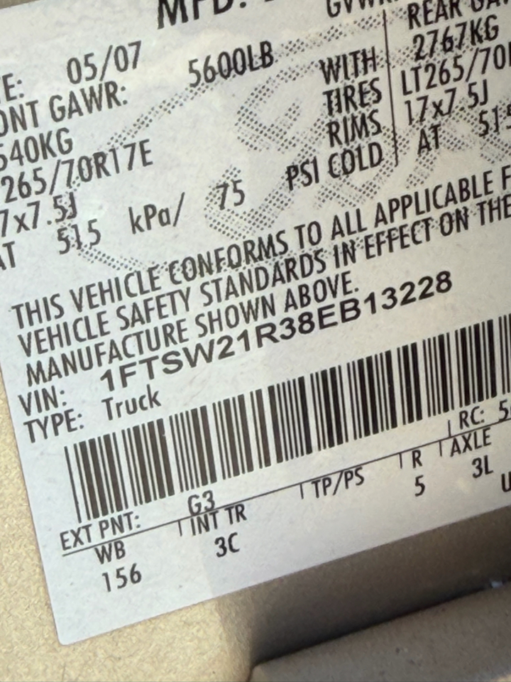 Vehicle Inquiry for 2008 Ford Super Duty F-250 SRW 4WD Crew Cab 172" XLT